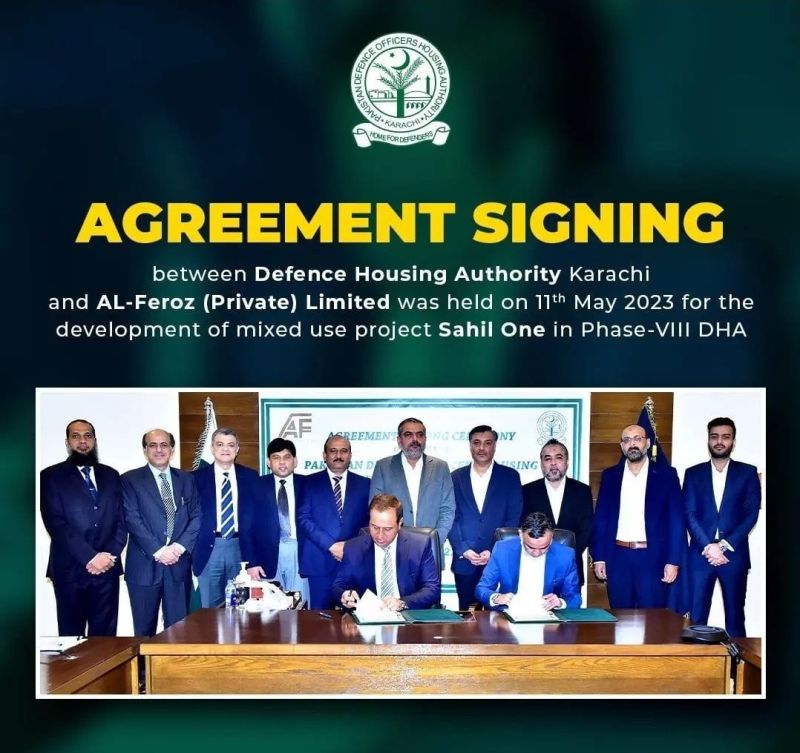 Agreement Signing between Defence Housing Authority Karachi & Al-Feroz (Pvt.) Ltd for the development of a mixed-use project, Sahil One.